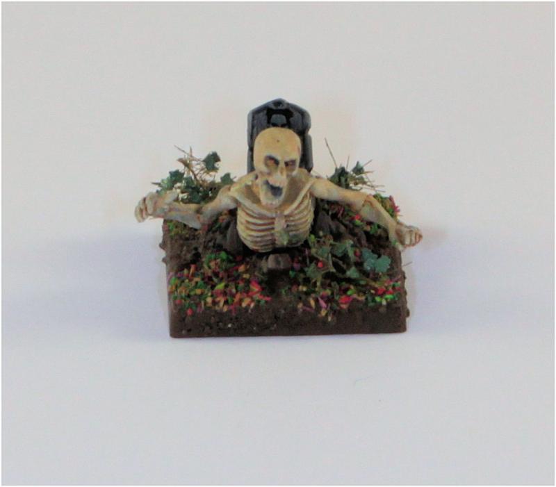 There is a "skeleton bursting out of the ground" figure on the sprue, so I built and painted it as well, giving a total of twenty one figures in the unit. No big problem in itself, but they only supply twenty bases... I've used a base from another unit, so I'll need to replace it at some point.